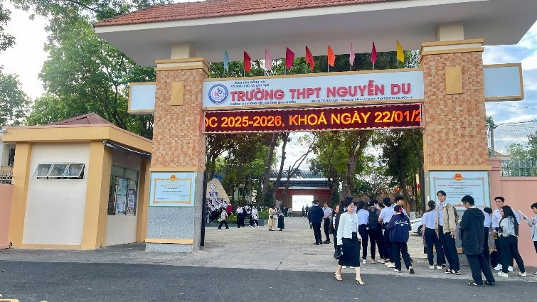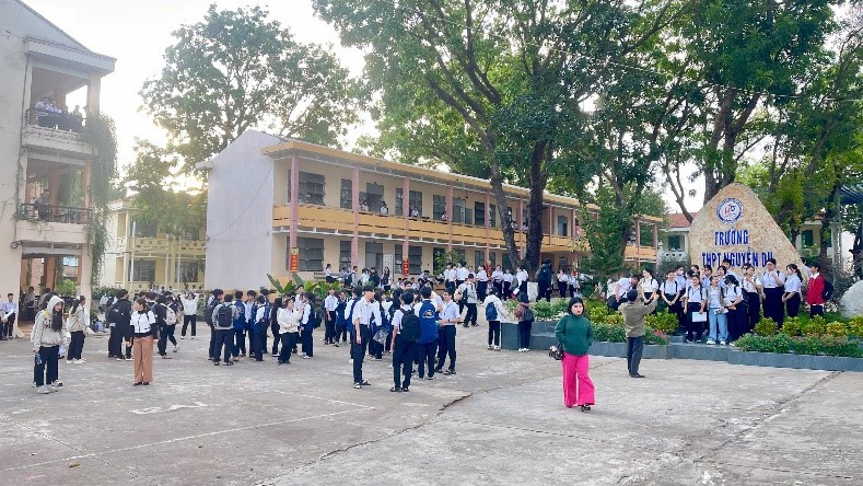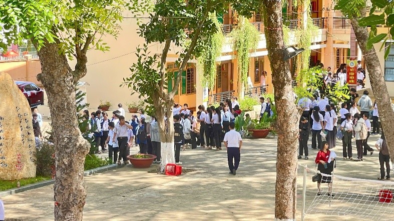 Điểm thi tại Trường THPT Nguyễn Du được bảo đảm thông thoáng, an toàn.