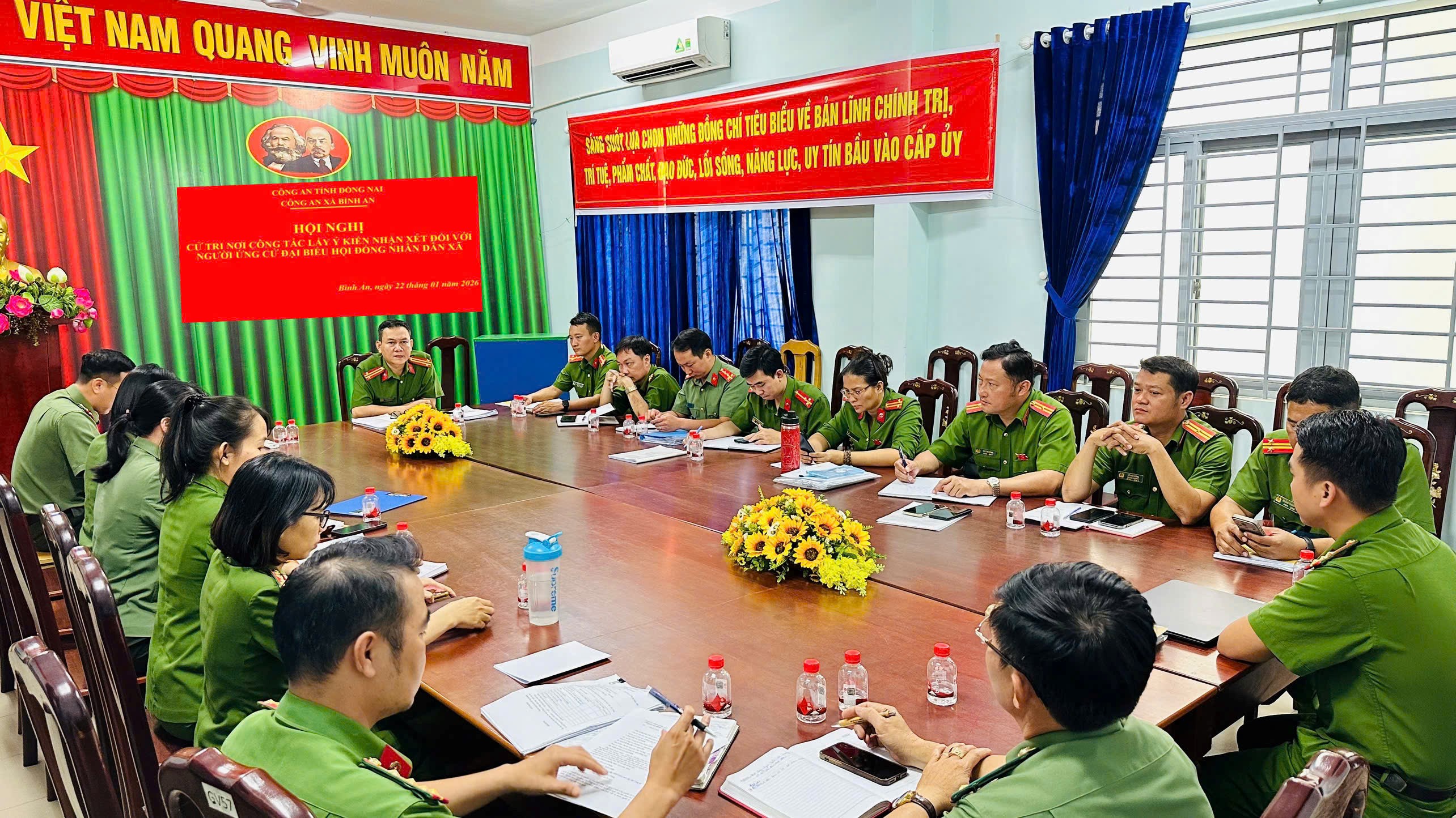 Với tinh thần trách nhiệm cao, cử tri đã tham gia đóng góp nhiều ý kiến thẳng thắn, khách quan, thể hiện sự tin tưởng đối với người được giới thiệu ứng cử. Kết quả, 100% cử tri tham dự hội nghị thống nhất, biểu quyết tín nhiệm và giới thiệu đồng chí Trung tá Đinh Xuân Chiến – Ủy viên Ban Thường vụ Đảng uỷ xã, Bí thư Chi bộ, Trưởng Công an xã và đồng chí Đại úy Đặng Quang Dương – Cán bộ Tổ Cảnh sát phòng, chống tội phạm tham gia ứng cử đại biểu Hội đồng nhân dân xã Bình An nhiệm kỳ 2026–2031.