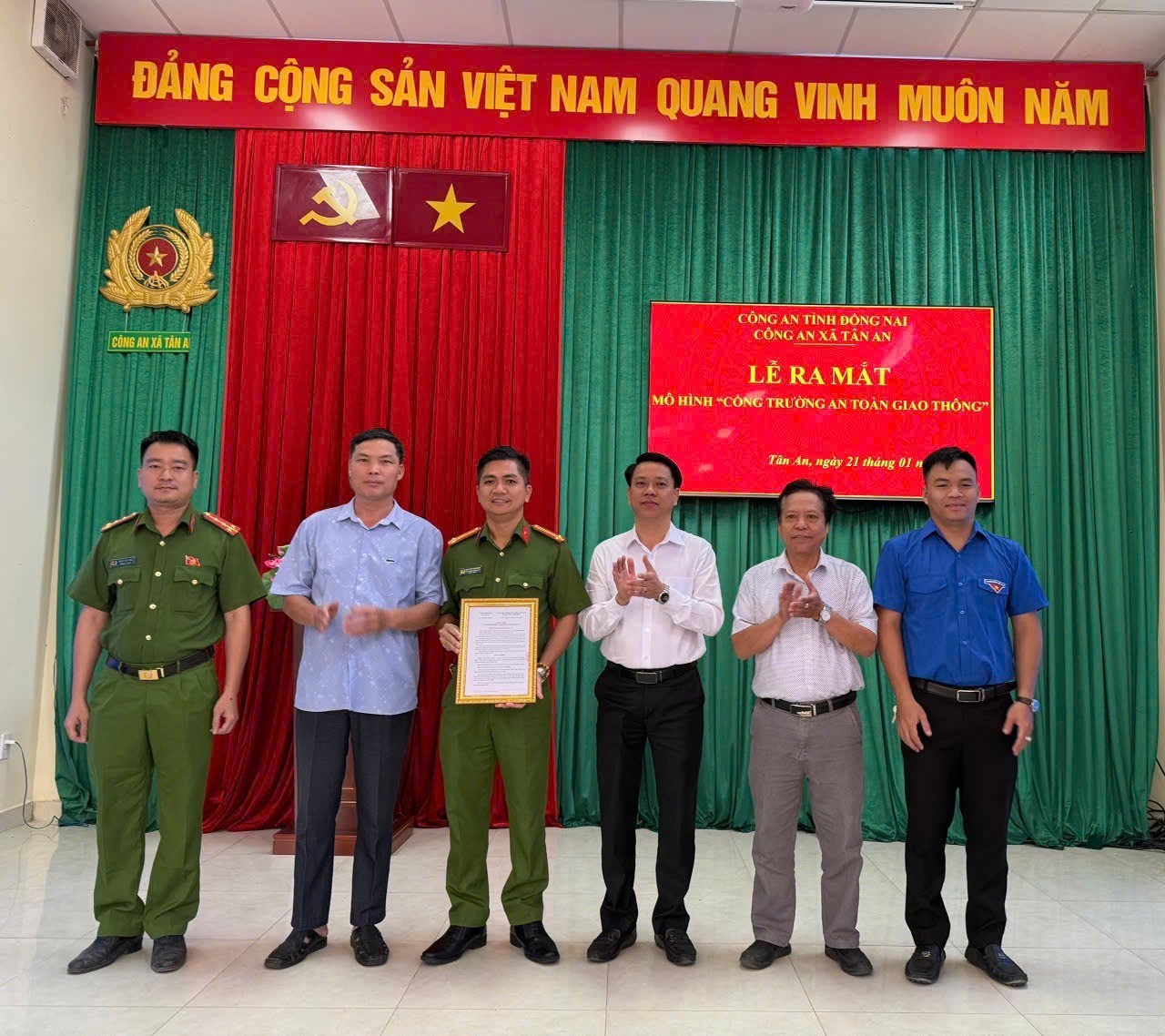 Cũng trong chương trình, UBND xã Tân An đã công bố Quyết định thành lập mô hình “Cổng trường an toàn giao thông” tại Trường THCS Vĩnh Tân, nhằm tăng cường công tác bảo đảm trật tự an toàn giao thông khu vực cổng trường, phòng ngừa tai nạn giao thông, nâng cao ý thức chấp hành pháp luật về giao thông cho học sinh, phụ huynh và Nhân dân.
