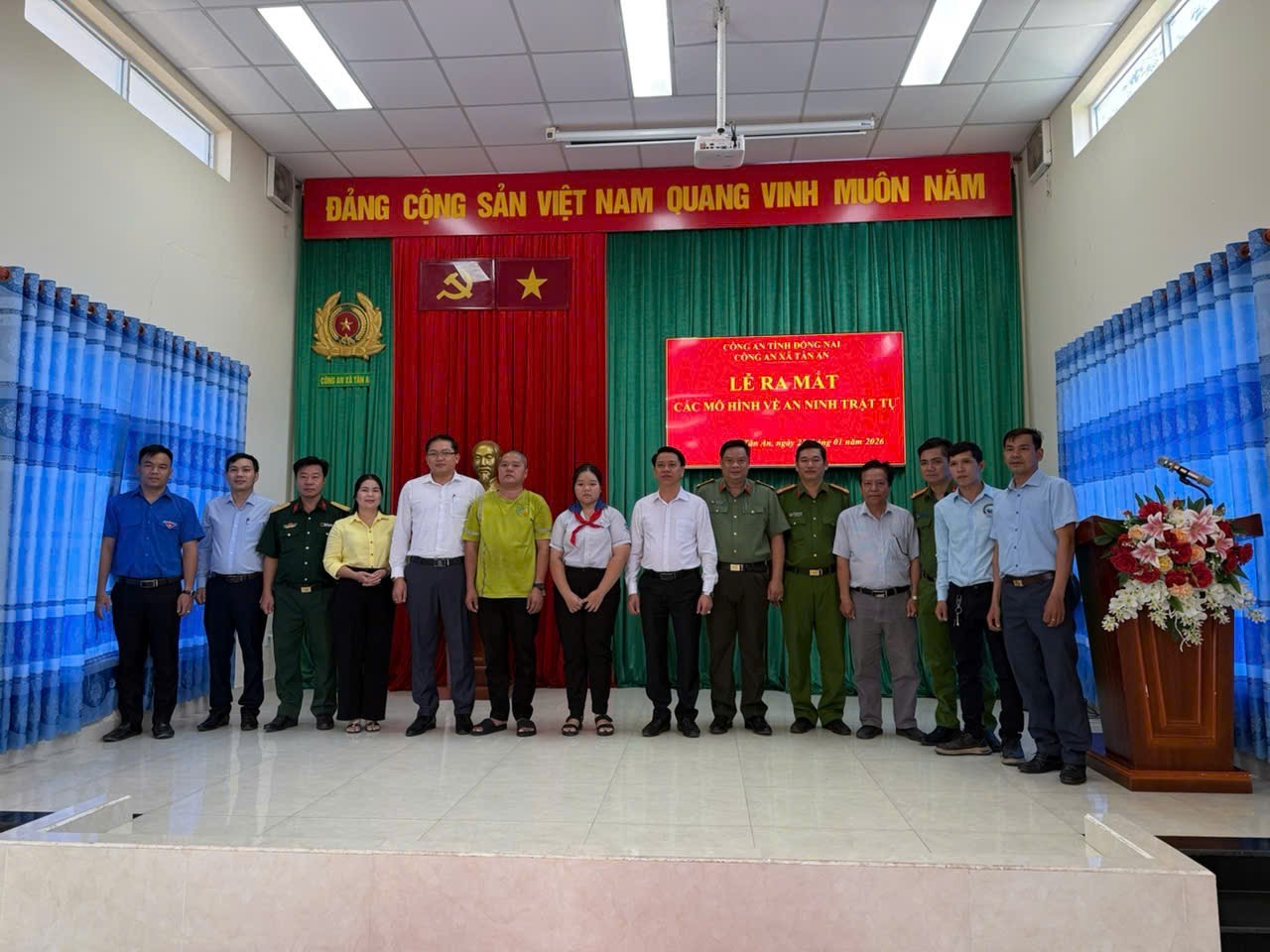 Tham dự buổi Lễ có đồng chí Lê Anh Tuấn - Phó Bí thư Đảng uỷ, Chủ tịch UBND xã Tân An; đại diện lãnh đạo Ủy ban MTTQ Việt Nam xã; lãnh đạo các ban, ngành, đoàn thể xã; Ban Giám hiệu Trường Trung học cơ sở (THCS) Vĩnh Tân; đại diện Hội phụ huynh học sinh; Bí thư, Trưởng ấp cùng Ban Chỉ huy và cán bộ, chiến sĩ Công an xã Tân An.