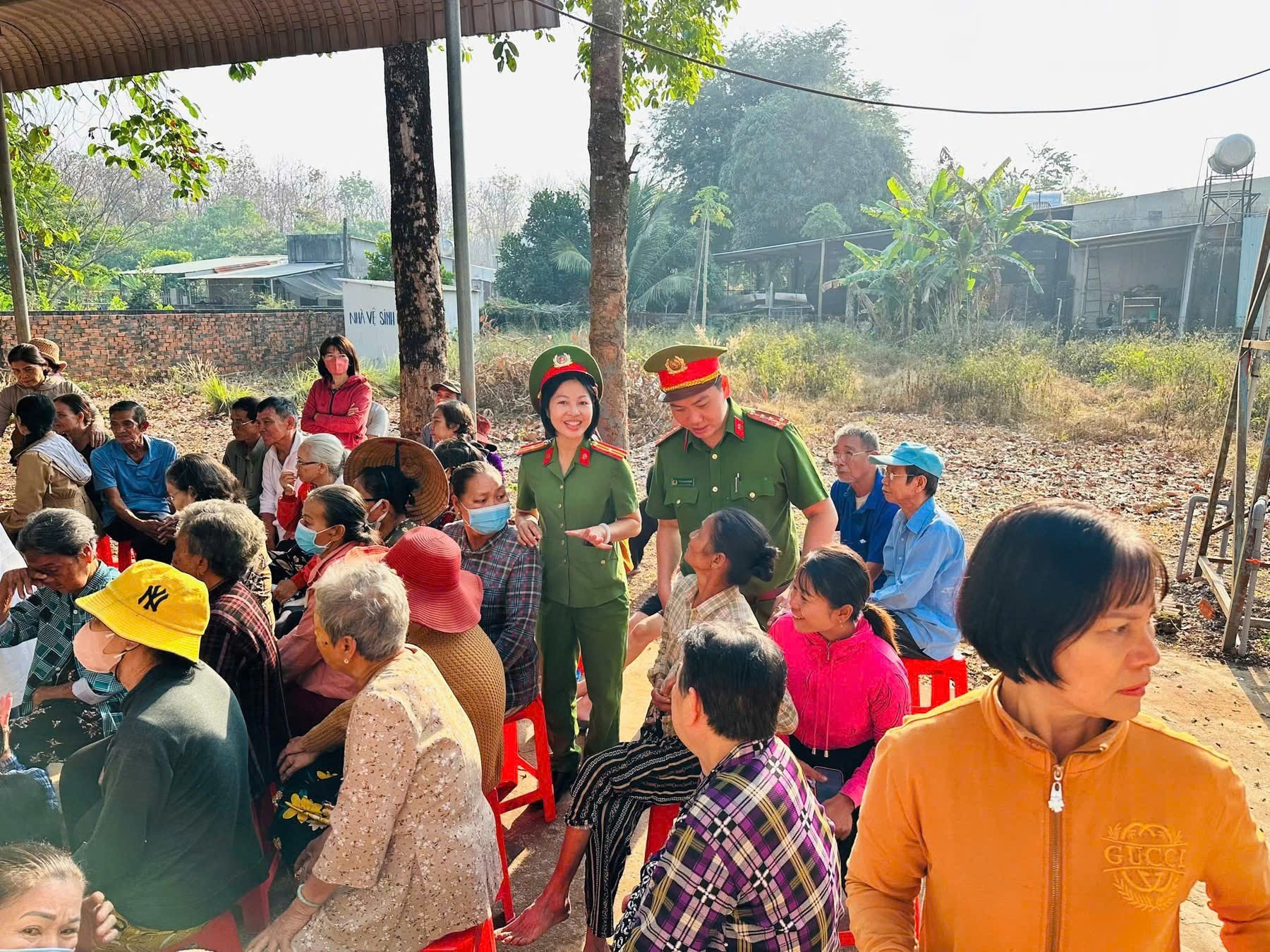 Song song với các hoạt động chăm lo đời sống Nhân dân, lực lượng Công an đã lồng ghép tuyên truyền, phổ biến pháp luật, nhắc nhở bà con nâng cao cảnh giác với các loại tội phạm trong dịp Tết, chấp hành nghiêm luật giao thông và cùng chung tay giữ gìn an ninh trật tự tại địa phương.