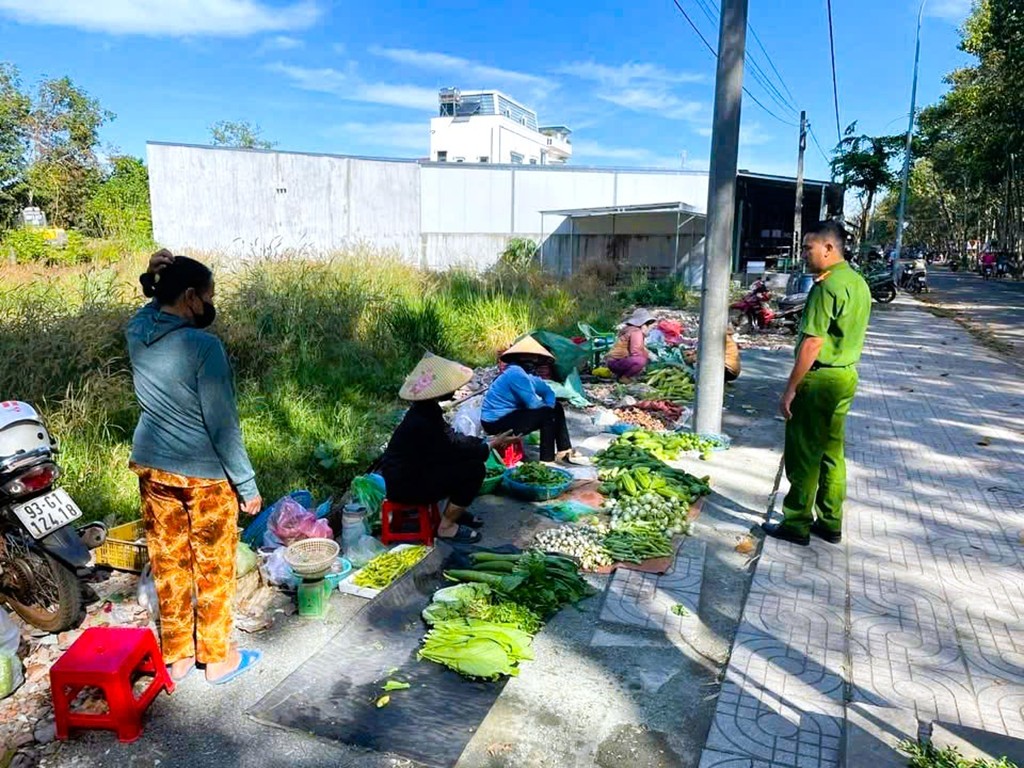 Công an phường phối hợp các ban, ngành địa phương tuyên truyền, nhắc nhở một số hộ dân kinh doanh lấn chiếm lòng lề đường tại khu vực chợ trên địa bàn