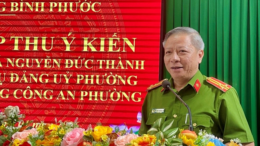 Thượng tá Nguyễn Đức Thành, Trưởng Công an phường báo cáo tình tình, kết quả tiếp và giải quyết đơn thư của công dân; công tác xây dựng Địa điểm tiếp công dân kiểu mẫu. Thượng tá Nguyễn Đức Thành, Trưởng Công an phường báo cáo tình tình, kết quả tiếp và giải quyết đơn thư của công dân; công tác xây dựng Địa điểm tiếp công dân kiểu mẫu.