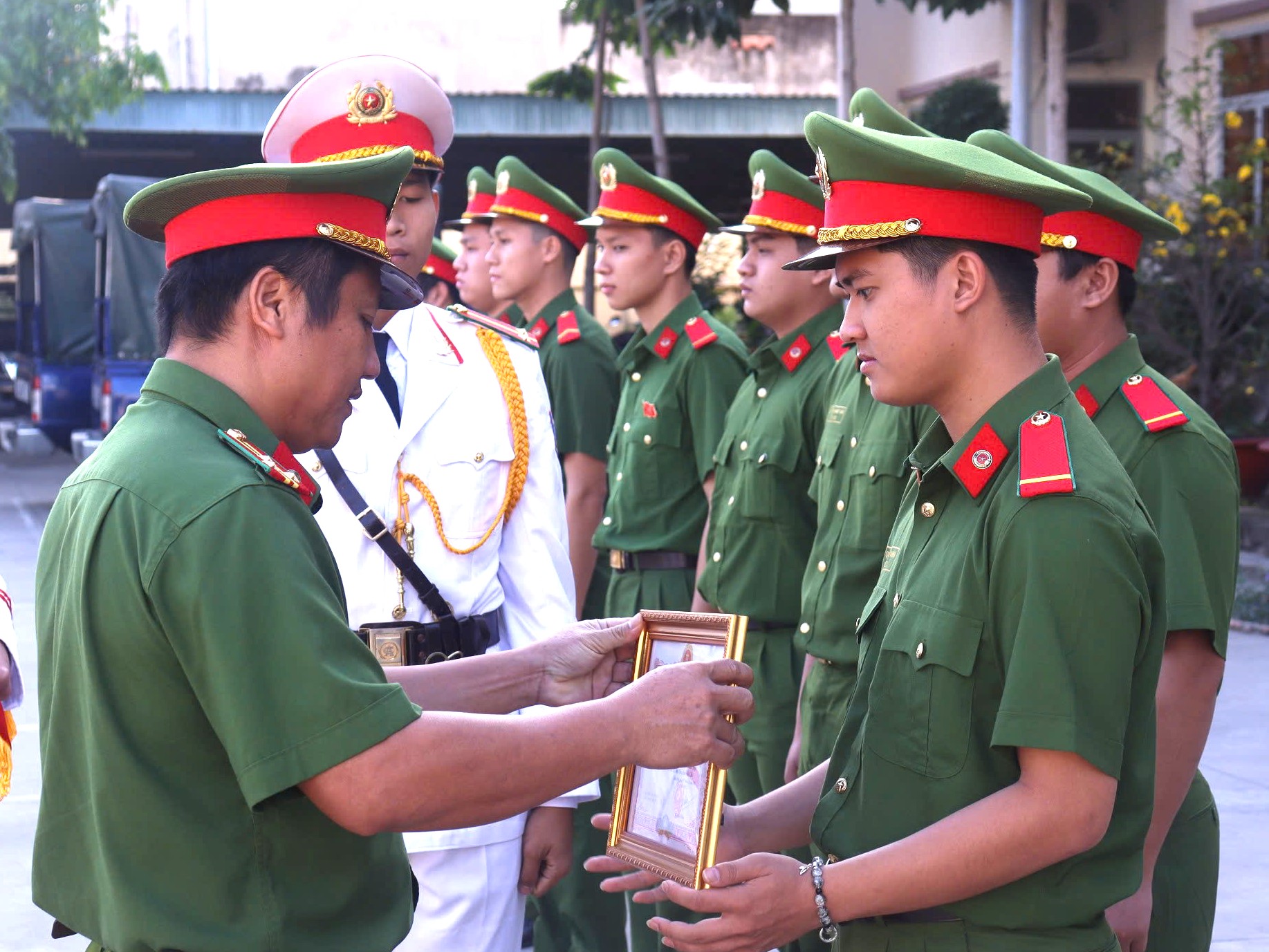 Phòng Cảnh sát cơ động trao Giấy khen của Chủ tịch UBND xã Sơn Hòa, tỉnh Đăk Lăk tặng cán bộ, chiến sĩ đơn vị có thành tích xuất sắc trong công tác