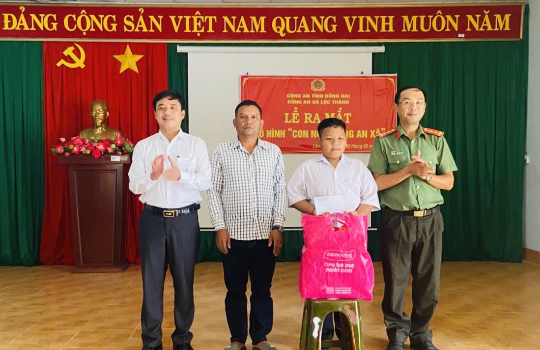 Tại Lễ ra mắt mô hình, Công an xã đã trao tặng nhiều phần quà thiết thực và cam kết đồng hành, tạo điểm tựa tinh thần cho em trong học tập và cuộc sống. Mỗi tháng, Công an xã sẽ hỗ trợ em tối thiểu 1 triệu đồng, đồng thời thường xuyên thăm hỏi, hỗ trợ để em có điều kiện phát triển tốt hơn.