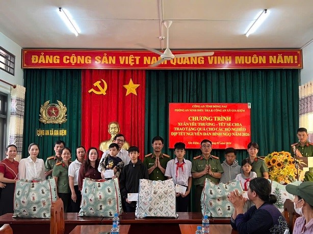 Sáng ngày 06/02/2026, Công an xã Gia Kiệm đã phối hợp phòng An ninh điều tra, Công an tỉnh Đồng Nai tổ chức trao các phần quà cho các hộ khó khăn, gia đình chính sách trên địa bàn xã Gia Kiệm nhân dịp Tết Nguyên đán Bính Ngọ năm 2026.