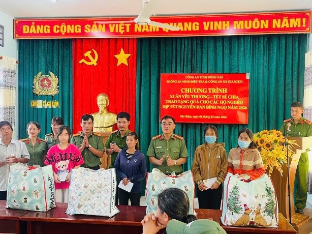Công an xã Gia Kiệm phối hợp trao quà nhân dịp Xuân Bính Ngọ 2026