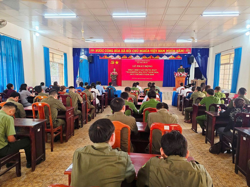 Tại buổi Lễ, đồng chí Trương Tất Hiển – Phó Trưởng Công an xã Nha Bích đã thông qua Kế hoạch xây dựng xã đạt tiêu chí “Xã không ma túy” năm 2026, định hướng duy trì đến năm 2030. Kế hoạch xác định rõ mục tiêu, nhiệm vụ, giải pháp và lộ trình thực hiện, nhấn mạnh yêu cầu phát huy vai trò lãnh đạo của cấp ủy Đảng, sự quản lý điều hành của chính quyền và trách nhiệm của cả hệ thống chính trị trong công tác phòng, chống và kiểm soát ma túy ngay từ cơ sở.