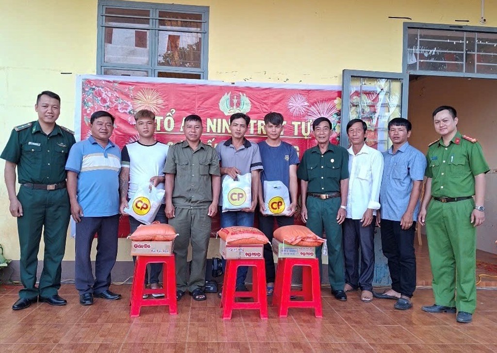 Công an xã phối hợp với ban ngành, đoàn thể địa phương tặng quà các trường hợp mới chấp hành xong án phạt tù trở về địa phương