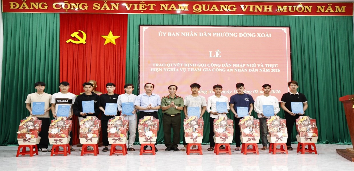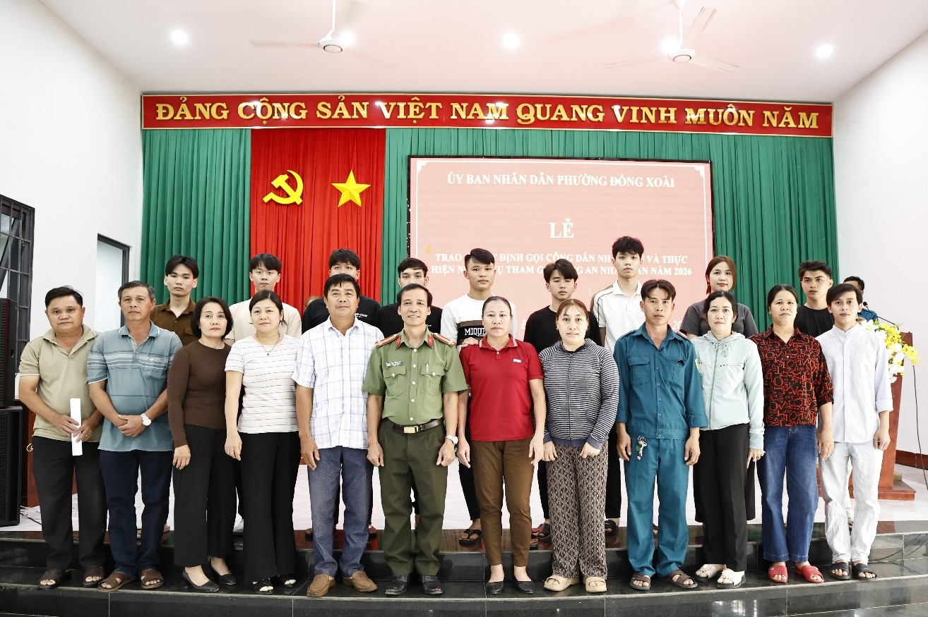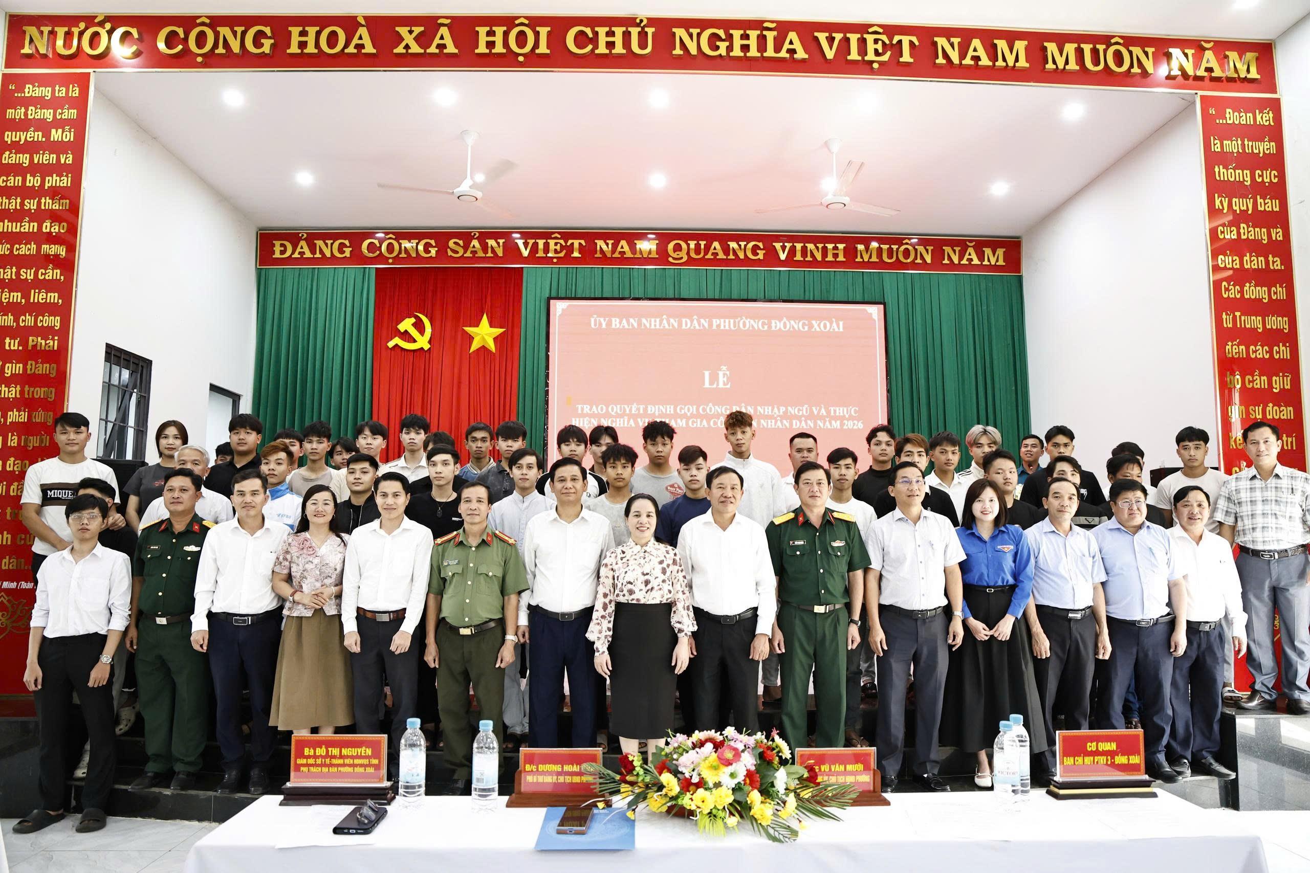 Buổi Lễ do đồng chí Dương Hoài Pha, Chủ tịch UBND phường Đồng Xoài chủ trì, cùng dự có lãnh đạo các ban, ngành, đoàn thể, Trưởng Công an phường, Chỉ huy trưởng Ban Chỉ huy quân sự phường, Ban điều hành 15 khu phố và các công dân có quyết định gọi nhập ngũ. Tại buổi Lễ, UBND phường đã trao tặng những phần quà có ý nghĩa cho các công dân và gia đình nhằm động viên tinh thần, tạo điều kiện để công dân yên tâm thực hiện nghĩa vụ quân sự năm 2026.