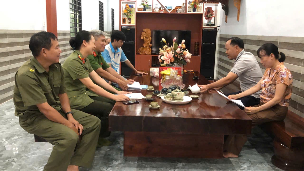 Thượng tá Lê Thanh Minh, Phó Trưởng Công an phường và Tổ công tác đến vận động gia đình và công dân đăng ký tham gia nghĩa vụ CAND năm 2026.
