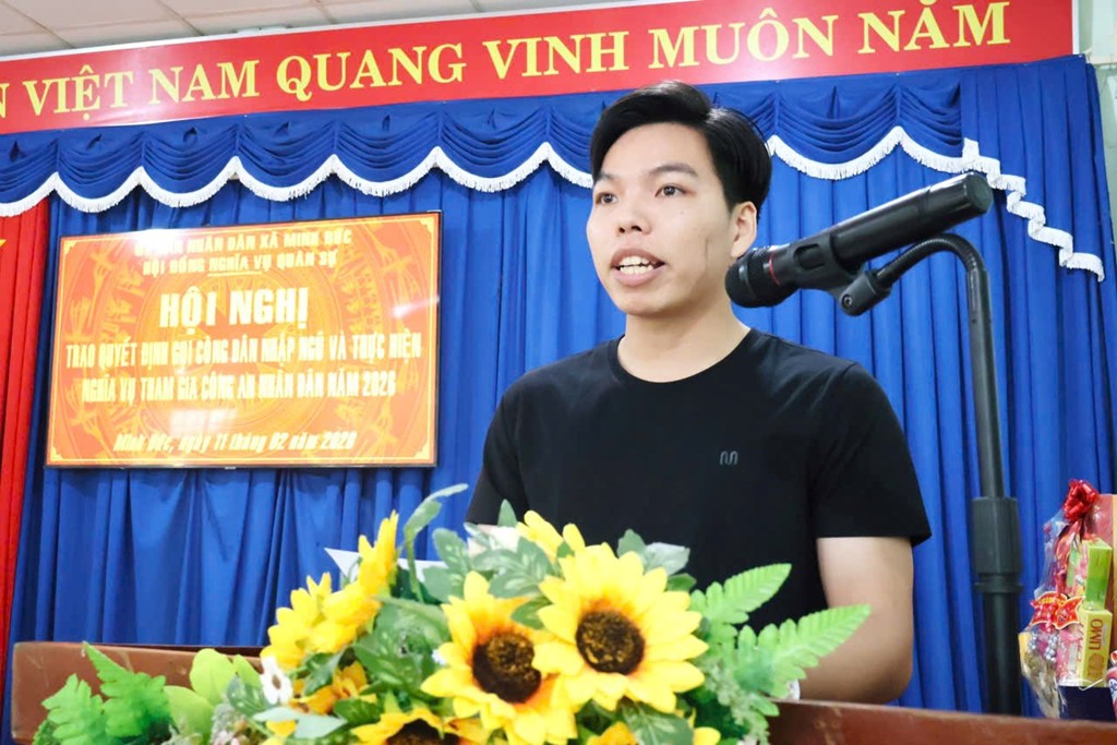 Phát biểu động viên, đồng chí Huỳnh Văn Minh chúc mừng 36 thanh niên ưu tú của xã Minh Đức vinh dự được trao Quyết định nhập ngũ và thực hiện nghĩa vụ tham gia CAND. Đồng chí nhấn mạnh, đây không chỉ là trách nhiệm thiêng liêng đối với Tổ quốc mà còn là niềm tự hào của mỗi gia đình và quê hương; mong muốn các thanh niên tiếp tục phát huy truyền thống cách mạng của địa phương, chấp hành nghiêm kỷ luật Quân đội nhân dân và Công an nhân dân, nỗ lực học tập, rèn luyện, hoàn thành xuất sắc mọi nhiệm vụ được giao.