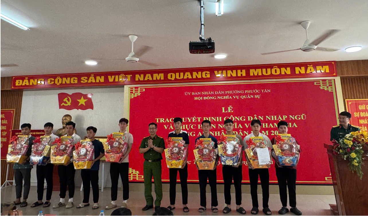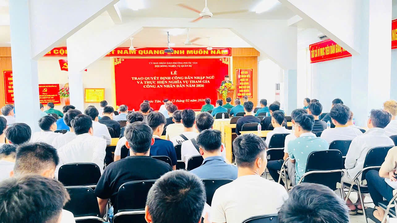 Tại buổi lễ, Hội đồng Nghĩa vụ quân sự phường đã công bố và trao quyết định cho các công dân đủ điều kiện lên đường thực hiện nghĩa vụ thiêng liêng đối với Tổ quốc. Năm 2026, phường Phước Tân có 40 công dân thực hiện nghĩa vụ quân sự chính thức và 6 công dân dự phòng; đối với nghĩa vụ tham gia Công an nhân dân có 9 công dân chính thức và 2 công dân dự phòng.