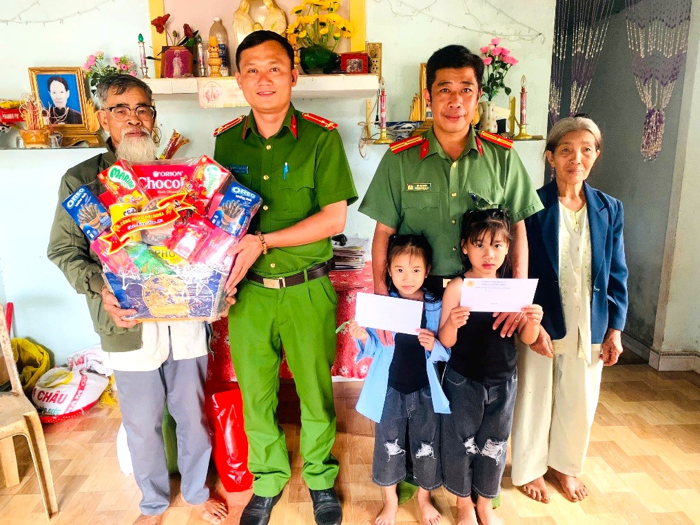 Tại các gia đình, đồng chí Thiếu tá Tô Văn Giáp cùng cán bộ chiến sĩ Công an xã đã ân cần thăm hỏi tình hình học tập, sinh hoạt của các em; động viên các em tiếp tục nỗ lực vươn lên trong học tập, rèn luyện đạo đức, phấn đấu trở thành công dân có ích cho xã hội. Dịp này, đơn vị đã trao tặng các phần quà Tết thiết thực nhằm góp phần mang đến cho các em và gia đình một mùa xuân ấm áp, nghĩa tình. Ngoài ra, đơn vị còn thay mặt cho Công an tỉnh Đồng Nai gửi tặng quà và 500.000đ tiền mặt đến mỗi con nuôi của Công an xã nhằm động viên, khích lệ tinh thần của các em.