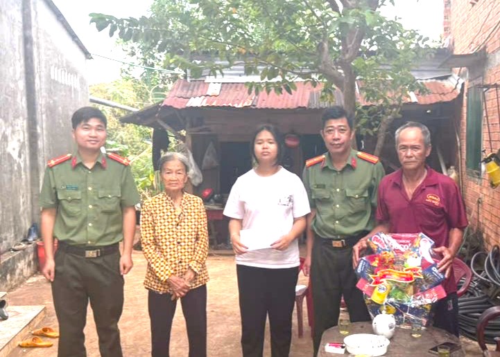 Công an xã thăm hỏi, tặng quà cháu Nguyễn Võ Thị Yến Vy.