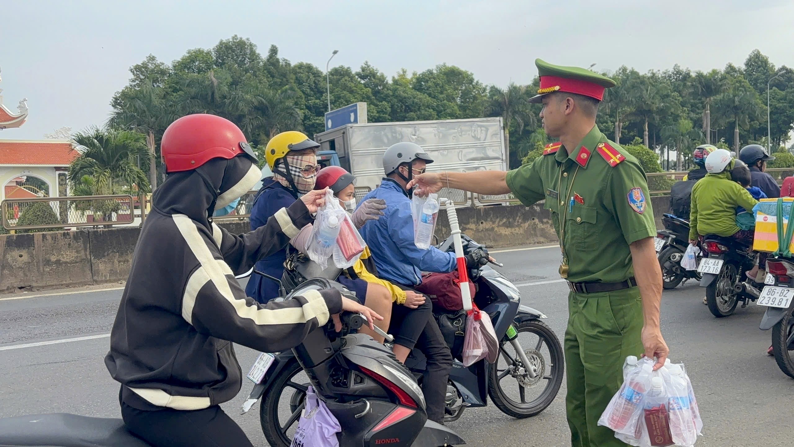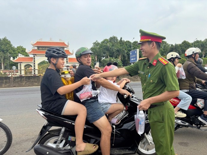 Những chai nước mát, chiếc khăn lạnh không chỉ xua tan mệt mỏi mà còn là lời động viên, chia sẻ đầy ấm áp. Hoạt động này thể hiện rõ tinh thần “Vì Nhân dân phục vụ” của lực lượng Công an xã, góp phần gắn kết tình quân dân, giữ vững an ninh trật tự và đảm bảo an toàn cho mọi người trên hành trình trở về đoàn tụ bên gia đình.