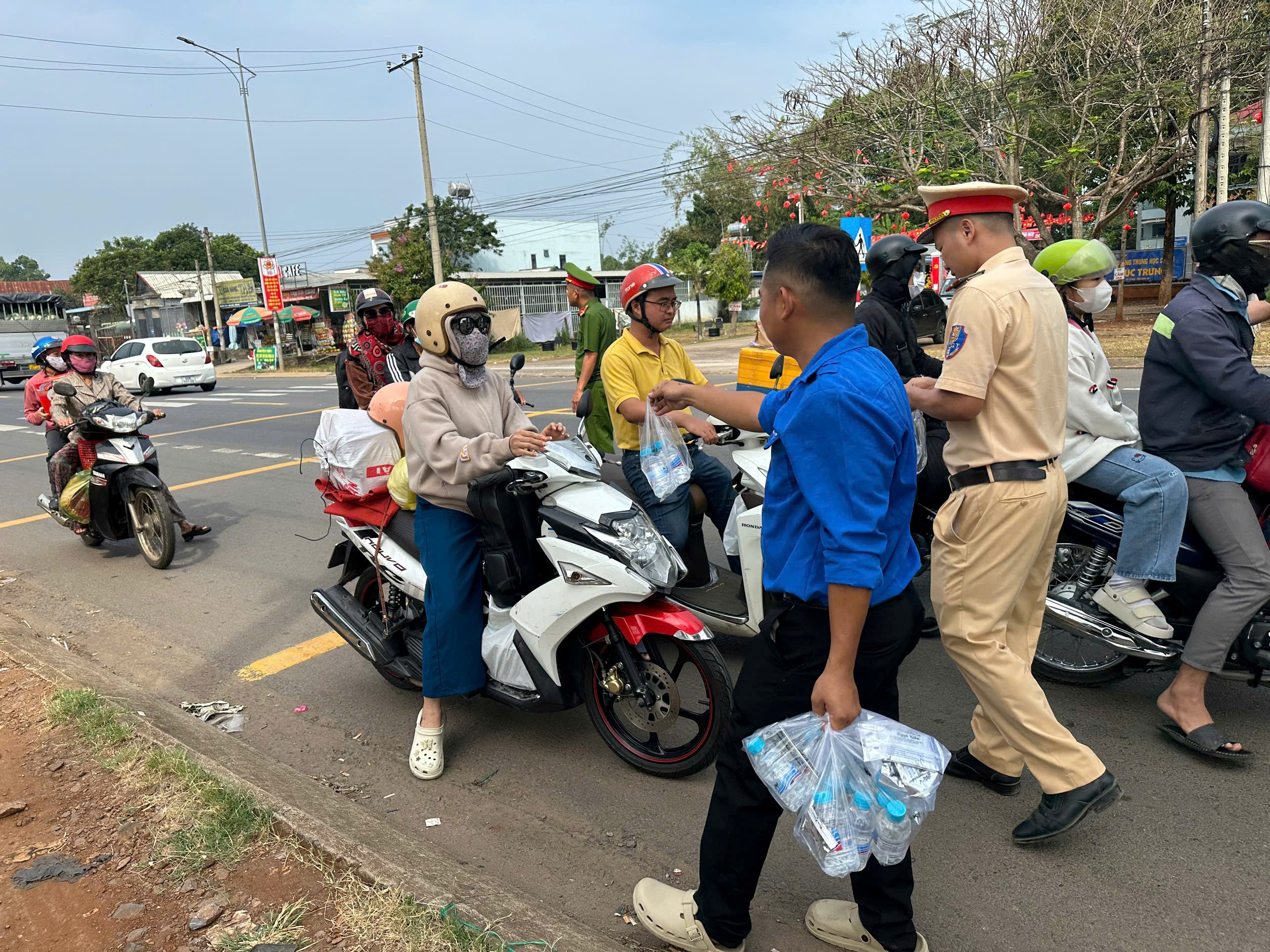 Tại các điểm dừng chân, hơn 2000 chai nước suối và 2000 khăn lạnh đã được các cán bộ, chiến sĩ tận tay trao đến bà con. Những món quà nhỏ nhưng chứa đựng sự quan tâm chân thành, giúp người dân xua tan phần nào mệt mỏi, tiếp thêm năng lượng cho chặng đường phía trước. Ngoài ra, Công an xã hướng dẫn người dân thực hiện nghiêm quy định pháp luật trong quá trình tham gia giao thông.