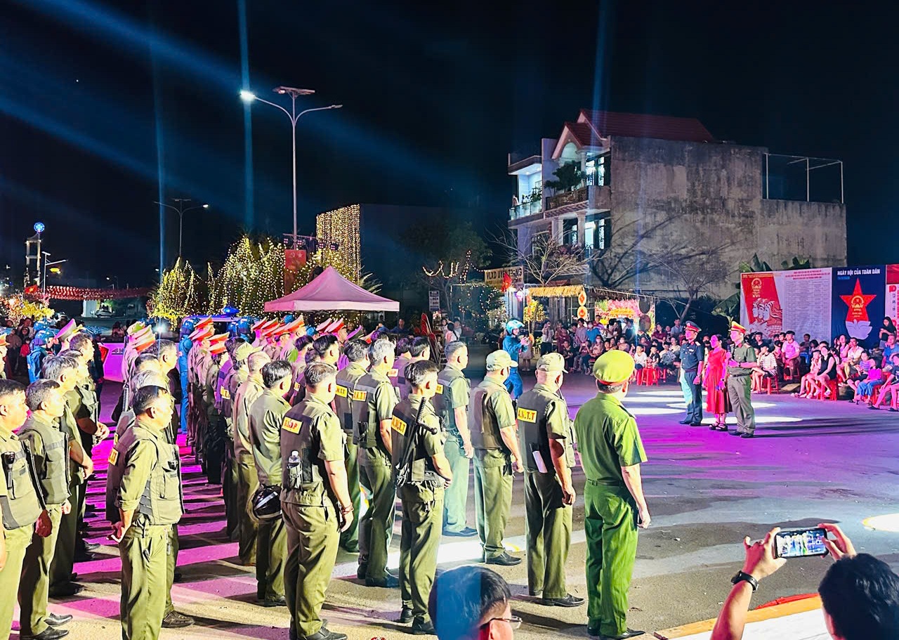 Tham dự buổi lễ có lãnh đạo địa phương cùng lực lượng Công an, quân sự và lực lượng bảo vệ ANTT ở cơ sở. Tại chương trình, các lực lượng thể hiện quyết tâm cao trong công tác giữ gìn ANTT, bảo đảm cho Nhân dân vui Xuân, đón Tết an toàn, lành mạnh, tiết kiệm.