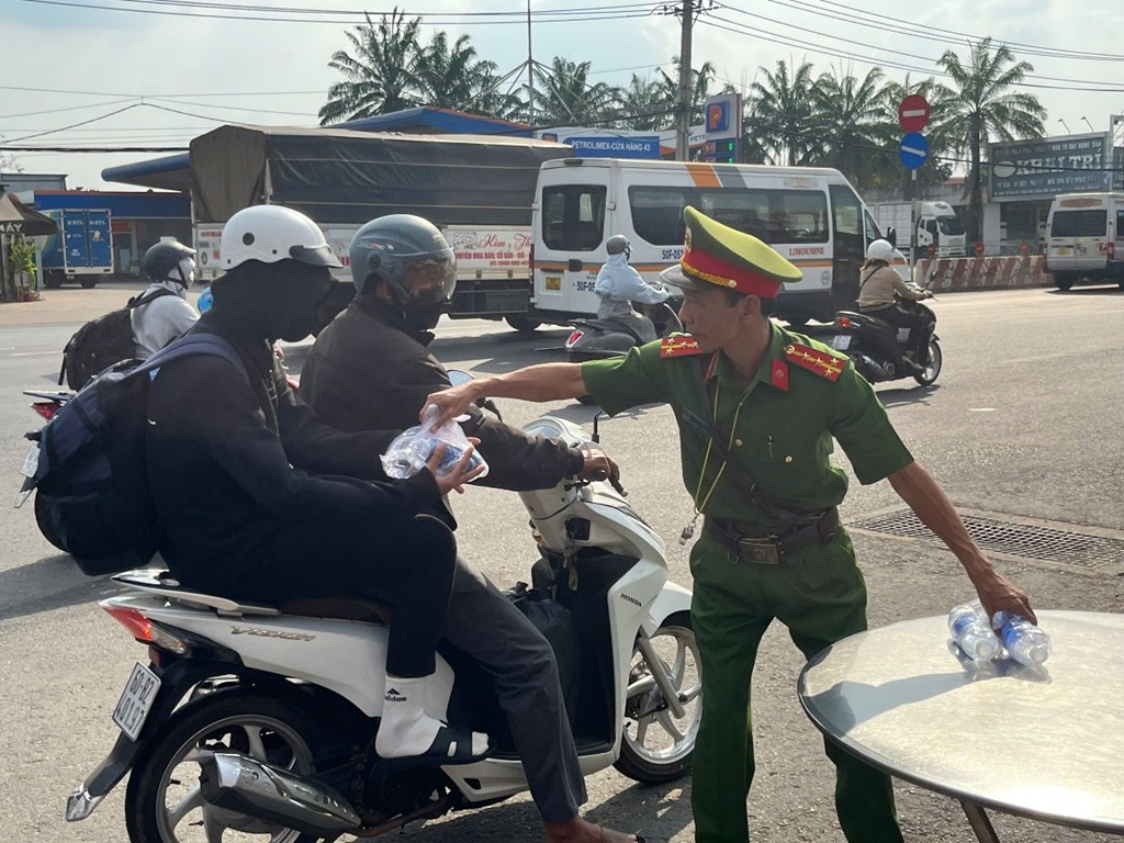 Chiều 21/2, Công an xã Hưng Thịnh, tỉnh Đồng Nai tổ chức phát miễn phí 4.000 chai nước uống và 4.000 khăn lạnh nhằm tiếp sức bà con trên hành trình trở lại công ty, nhà máy. Những phần quà tuy nhỏ nhưng thể hiện sự quan tâm, sẻ chia và gửi gắm lời chúc thượng lộ bình an đến người dân.
