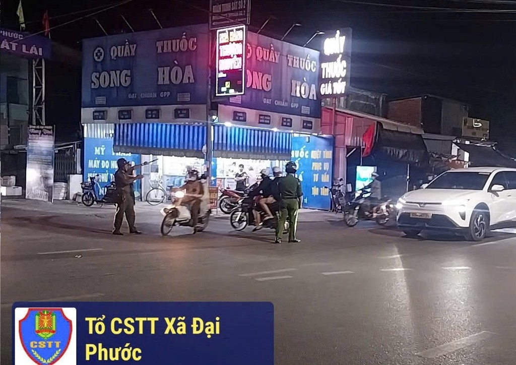 Trước tình hình đó, Công an xã Đại Phước (tỉnh Đồng Nai) đã chủ động nắm chắc diễn biến thực tế, kịp thời triển khai phương án tăng cường lực lượng điều tiết, phân luồng tại các vị trí trọng điểm. Cán bộ, chiến sĩ trực tiếp bám tuyến, bám địa bàn, hướng dẫn phương tiện lưu thông trật tự, nhắc nhở người dân chấp hành nghiêm hiệu lệnh của lực lượng làm nhiệm vụ, bảo đảm an toàn cho người và phương tiện.