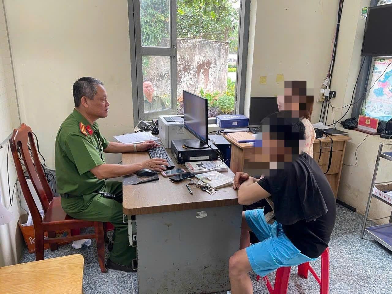 Đối tượng Nguyễn Q.H và Nguyễn Thị P.L tại Công an xã Long Thành