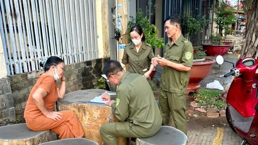 Lực lượng bảo vệ an ninh, trật tự ở cơ sở các khu phố tích cực tham gia rà soát, kiểm tra cư trú trên địa bàn phường Bình Phước.