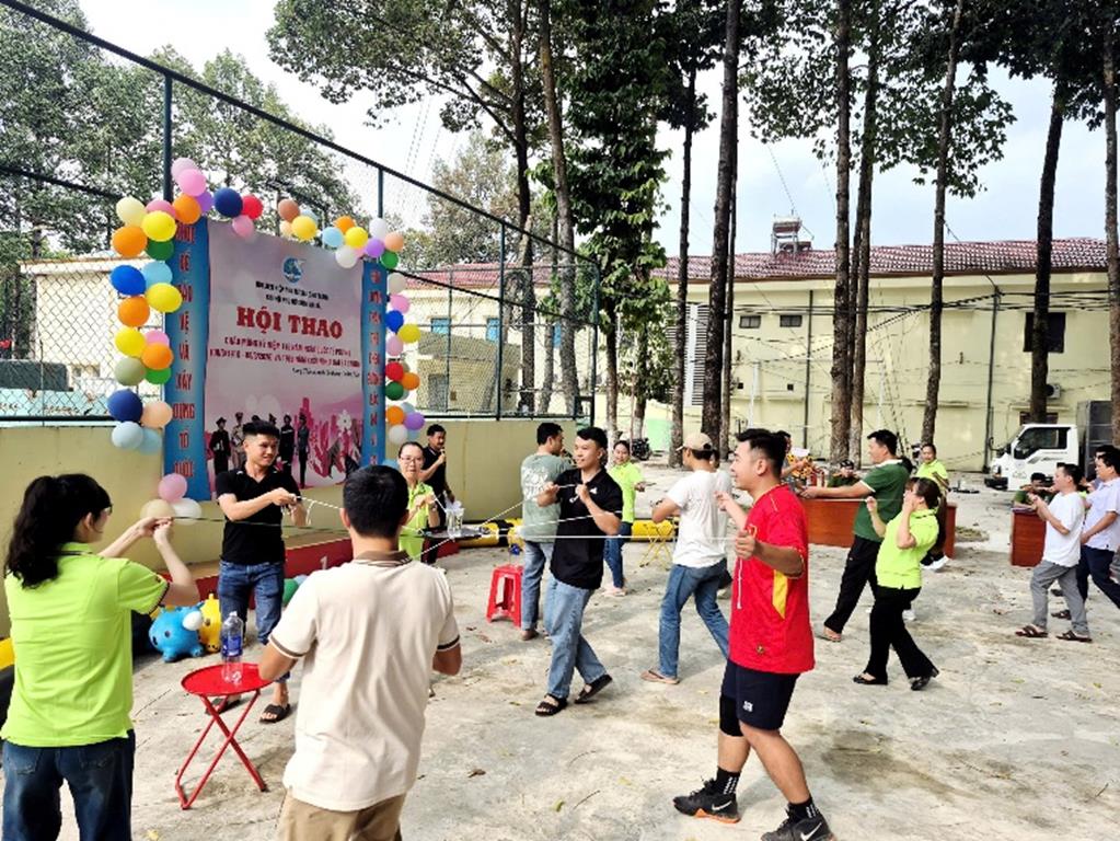 Hội thao có sự tham dự của 05 đội thi. Mỗi đội gồm cán bộ, hội viên nữ và các vận động viên nam đến từ các tổ công tác trong đơn vị. Các đội đã tham gia tranh tài ở 03 nội dung thi đấu gồm: Hơi thở chiến sĩ, Gắp vạn niềm tin và Chung sức đồng lòng. Đây đều là những trò chơi mang tính vận động, đòi hỏi sự khéo léo, phối hợp nhịp nhàng và tinh thần đồng đội cao.