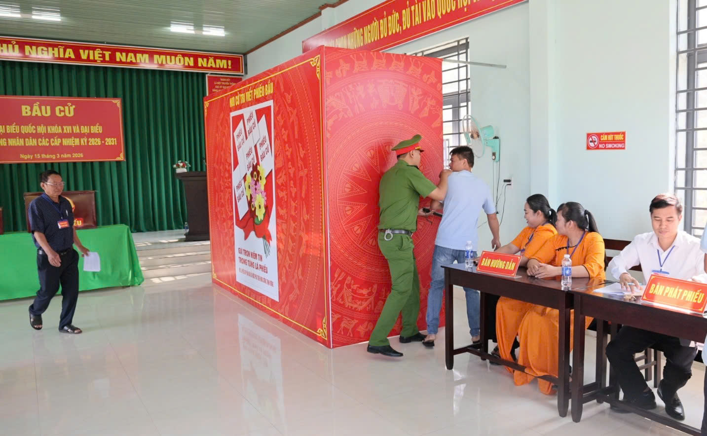 Buổi diễn tập nhằm rà soát, kiểm tra công tác chuẩn bị; nâng cao kỹ năng, nghiệp vụ cho các lực lượng tham gia phục vụ bầu cử, bảo đảm Ngày bầu cử diễn ra đúng quy định, dân chủ, an toàn và đúng pháp luật.