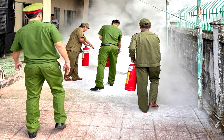 Chi đoàn Công an xã Xuân Lộc tuyên truyền, hướng dẫn và kiểm tra công tác phòng cháy, chữa cháy tại các điểm bầu cử