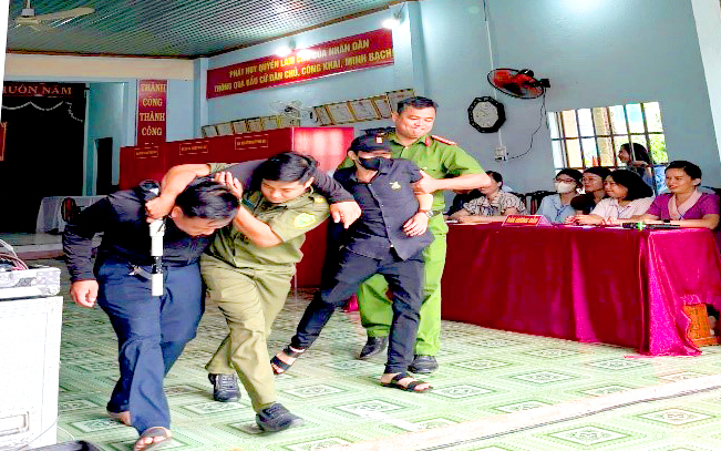 Diễn tập tình huống đối tượng gây mất ANTT, có hành vi chống người thi hành công vụ tại khu vực diễn ra bầu cử.
