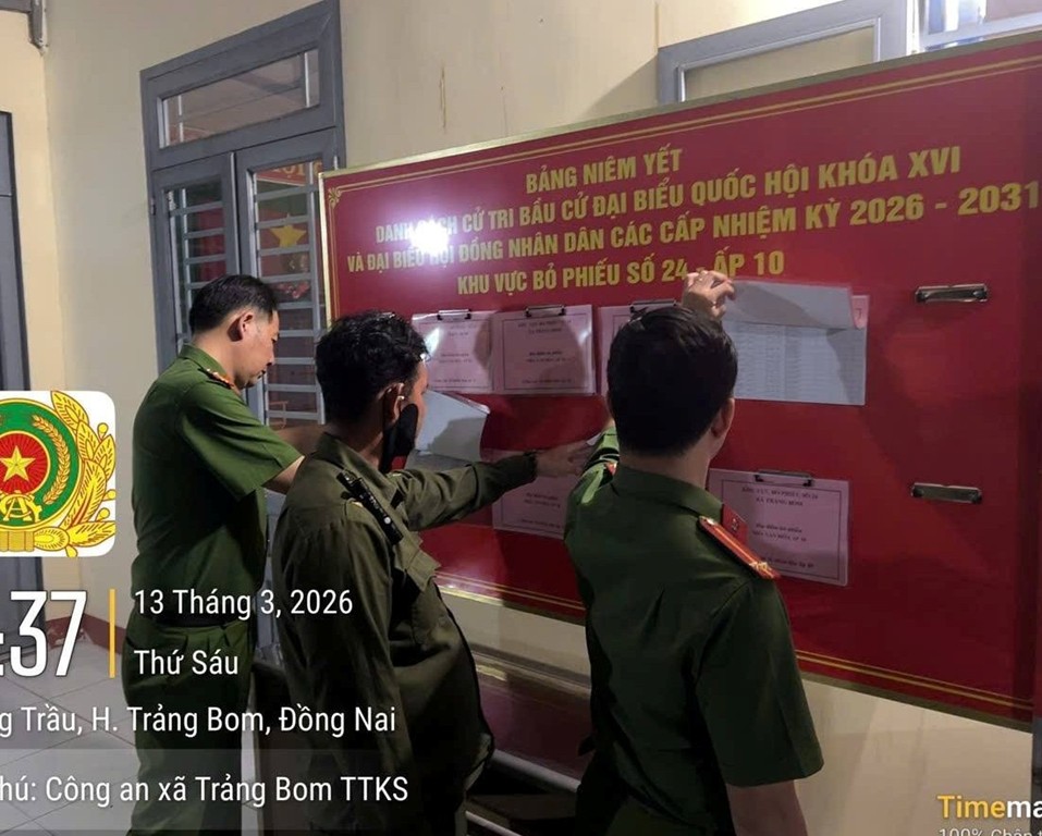 Nhằm bảo đảm an ninh, trật tự phục vụ ngày bầu cử diễn ra an toàn, dân chủ, đúng quy định của pháp luật, Công an xã Trảng Bom, tỉnh Đồng Nai đã chủ động triển khai các biện pháp công tác, tăng cường lực lượng bảo vệ tại các khu vực bỏ phiếu trên địa bàn.