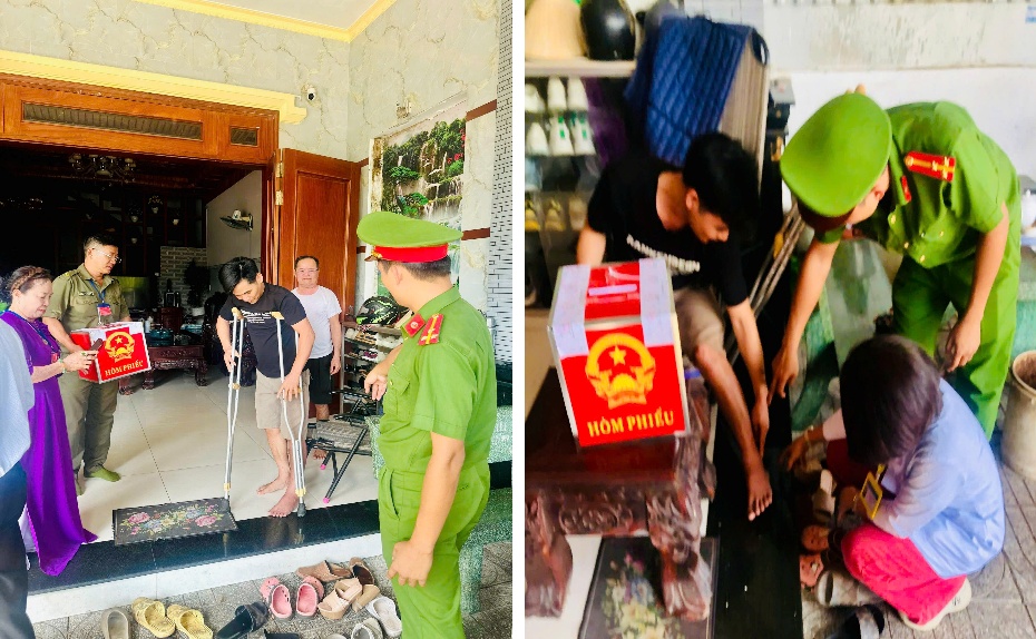 Lực lượng Công an phường mang hòm phiếu đến tận nhà anh Minh để hỗ trợ anh thực hiện quyền bầu cử