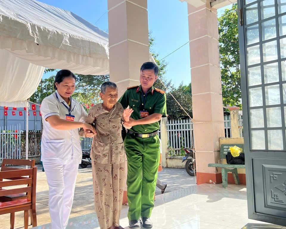 Cụ Ngạng được các lực lượng hỗ trợ để thực hiện quyền công dân của mình tại điểm bầu cử
