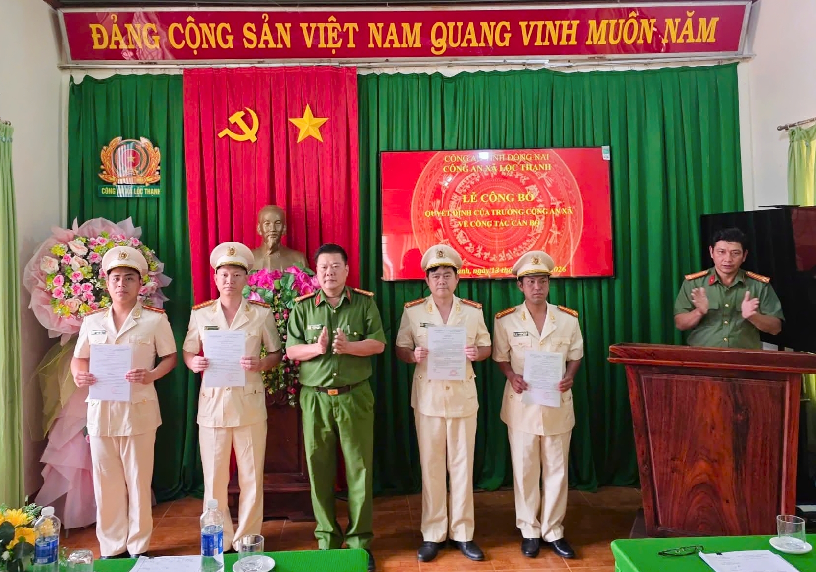 Tại buổi Lễ, Công an xã Lộc Thạnh đã công bố quyết định của Giám đốc Công an tỉnh Đồng Nai về việc bố trí, điều động 4 cán bộ (trong đó có 1 cán bộ công tác tại đơn vị trực thuộc Bộ Công an tăng cường về Công an các xã biên giới đất liền, 3 cán bộ công tác tại các đơn vị thuộc Công an tỉnh Đồng Nai) đến nhận công tác tại Công an xã Lộc Thạnh và bố trí nhận công tác ở các Tổ công tác.