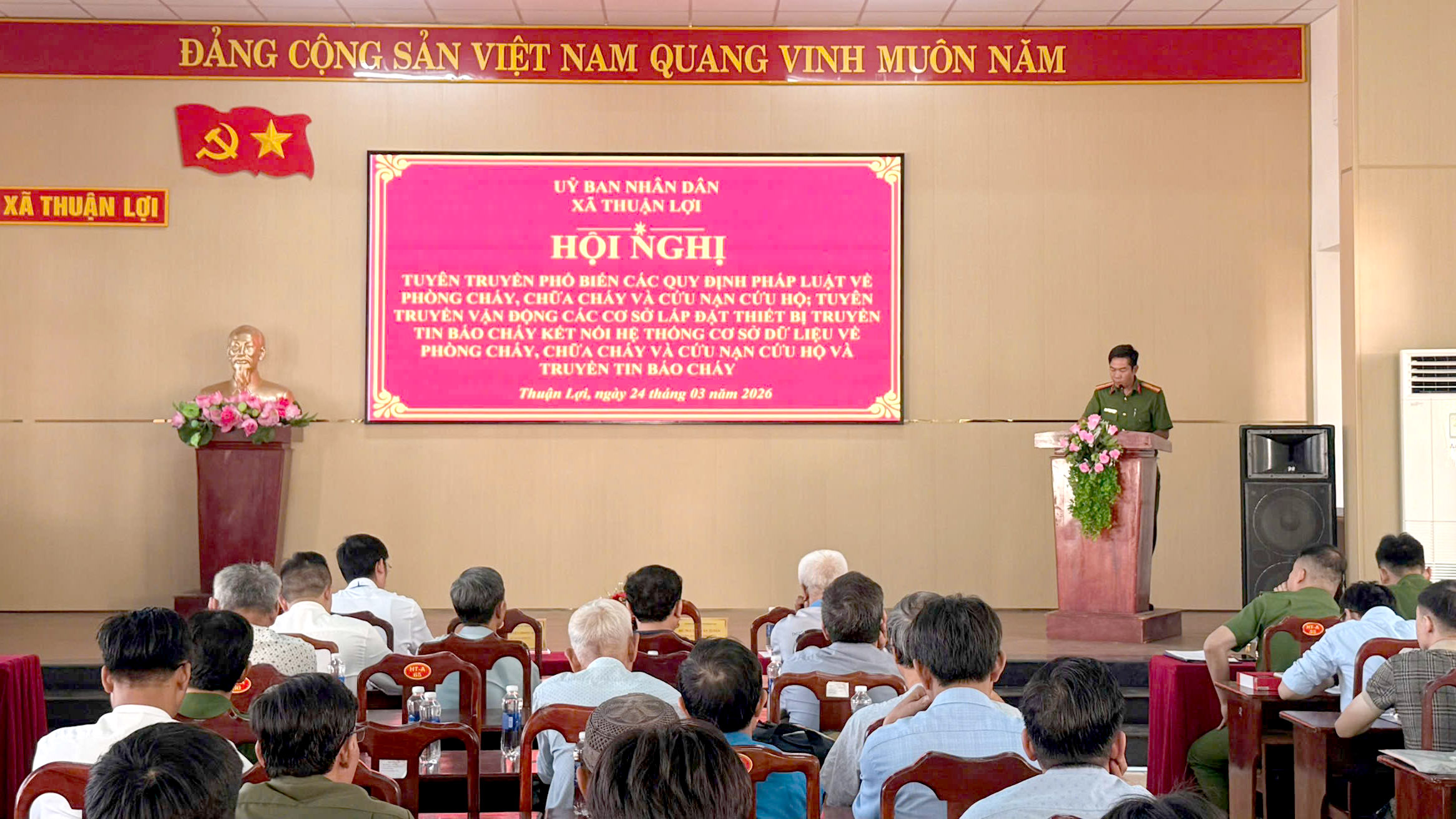 Tham dự Hội nghị có các đồng chí đại diện Chủ tịch Ủy ban nhân dân xã; Công an xã; ấp trưởng các ấp, lực lượng tham gia bảo vệ an ninh, trật tự ở cơ sở và đại diện các cơ quan, đơn vị, doanh nghiệp, hộ kinh doanh thuộc diện quản lý về PCCC trên địa bàn xã.