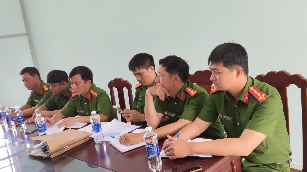 Chỉ huy và cán bộ Công an xã Long Hà làm việc với Đoàn kiểm sát.