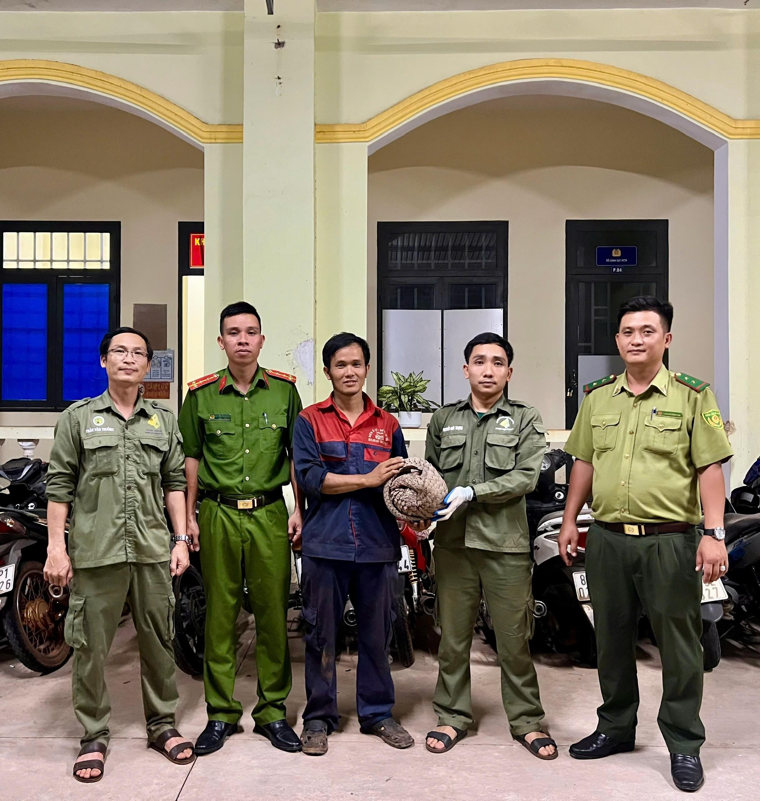 Anh Phạm Viết Đồng bàn giao cá thể Tê tê cho cơ quan chức năng