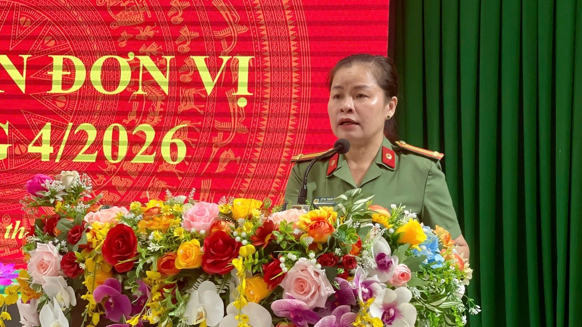 Trung tá Lê Thị Thanh Bình, Phó Trưởng Công an phường báo cáo kết quả công tác tháng 3/2026.