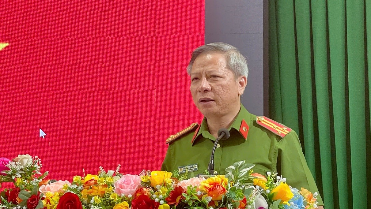 Thượng tá Nguyễn Đức Thành, Trưởng Công an phường phát biểu chỉ đạo.
