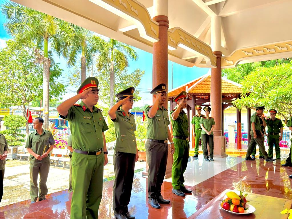 Trong không khí trang nghiêm và thành kính, cán bộ chiến sĩ Công an xã đã dành phút mặc niệm, kính cẩn nghiêng mình trước anh linh các anh hùng liệt sĩ, bày tỏ lòng biết ơn sâu sắc đối với những hy sinh to lớn của thế hệ cha anh đi trước – những người đã không tiếc máu xương để bảo vệ nền độc lập, tự do cho dân tộc.