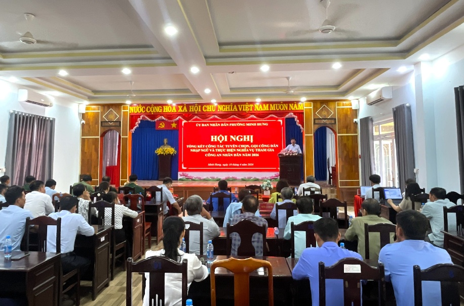 Dự và chỉ đạo hội nghị có đồng chí Lê Khắc Đồng, Chủ tịch UBND phường Minh Hưng; tham dự còn có đại diện lãnh đạo Đảng ủy, HĐND, Ủy ban MTTQ Việt Nam phường; đại diện Ban Chỉ huy phòng thủ khu vực 4 - Bình Long; Ban điều hành các khu phố và các thành viên Hội đồng Nghĩa vụ quân sự phường. Về phía Công an phường có Trung tá Đoàn Văn Tú, Phó Trưởng Công an phường.