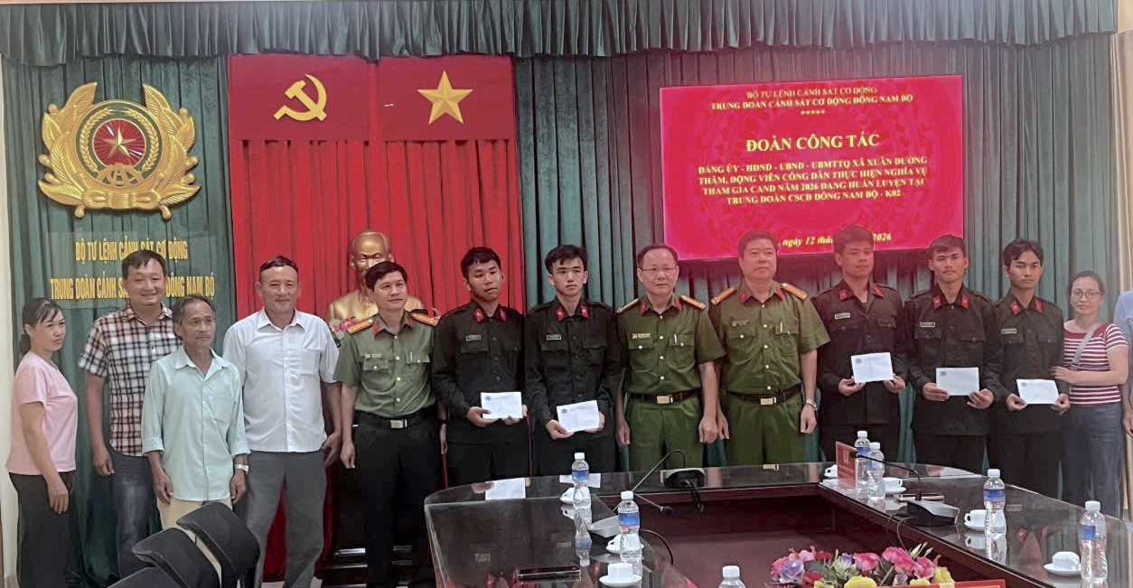 Dịp này, Lãnh đạo xã cảm ơn sâu sắc Trung đoàn Cảnh sát cơ động Đông Nam Bộ đã quan tâm, tạo điều kiện, giúp đỡ các chiến sĩ mới trong thời gian qua. Đồng thời, đoàn cũng gửi tặng quà, động viên tinh thần các chiến sĩ đang tham gia huấn luyện.