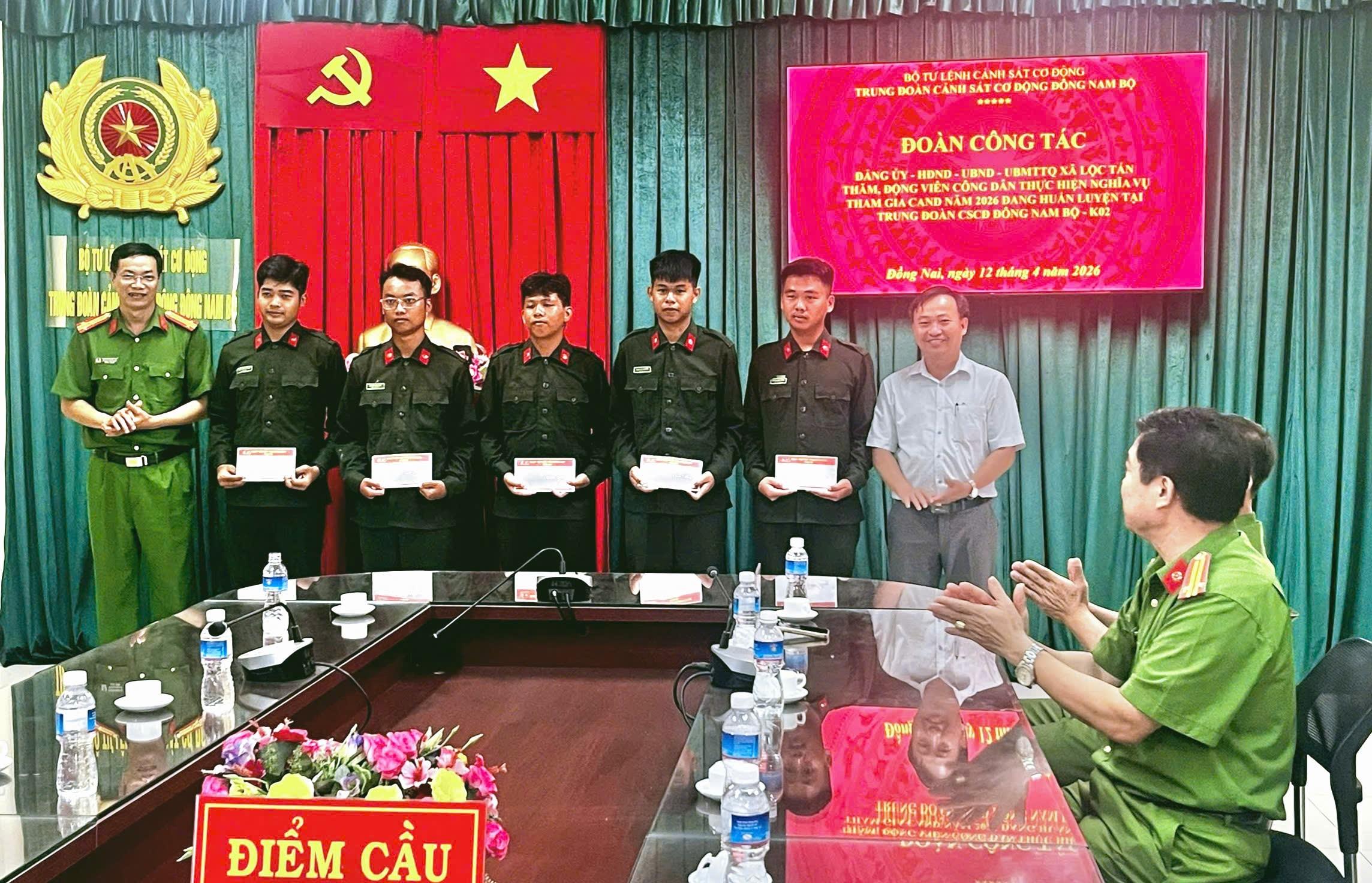 Đại diện Đảng uỷ, UBND xã và Công an xã Lộc Tấn bày tỏ sự tin tưởng và mong muốn các chiến sĩ tiếp tục phát huy truyền thống quê hương, nêu cao tinh thần trách nhiệm, tích cực học tập, rèn luyện, hoàn thành tốt mọi nhiệm vụ được giao, góp phần xây dựng lực lượng Công an nhân dân chính quy, tinh nhuệ, hiện đại.