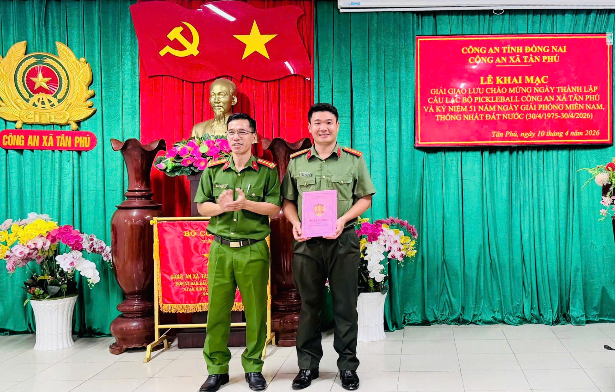 Công an xã Tân Phú vừa tổ chức Lễ ra mắt Câu lạc bộ Pickleball, đồng thời khai mạc Giải giao lưu Pickleball chào mừng sự kiện và hướng tới kỷ niệm 51 năm Ngày Giải phóng miền Nam, thống nhất đất nước (30/4/1975 – 30/4/2026). Dự buổi lễ có Trung tá Phạm Hồng Tuấn, Trưởng Công an xã, cùng đông đảo cán bộ, chiến sĩ và các vận động viên tham gia thi đấu.