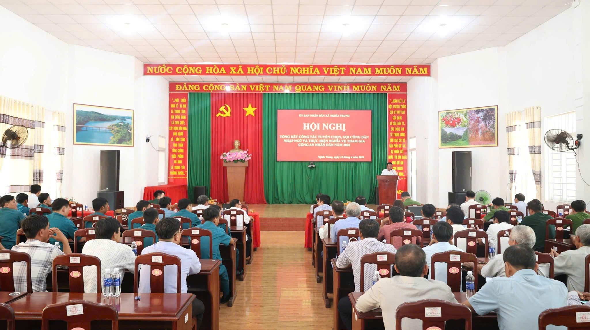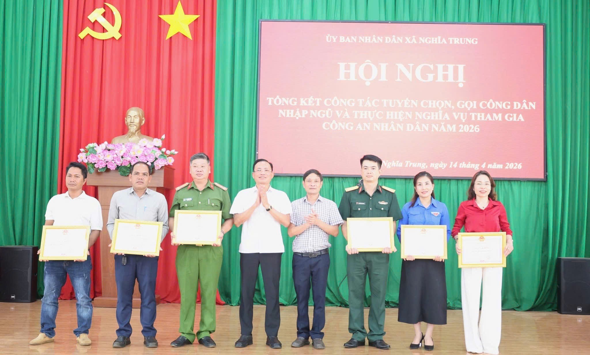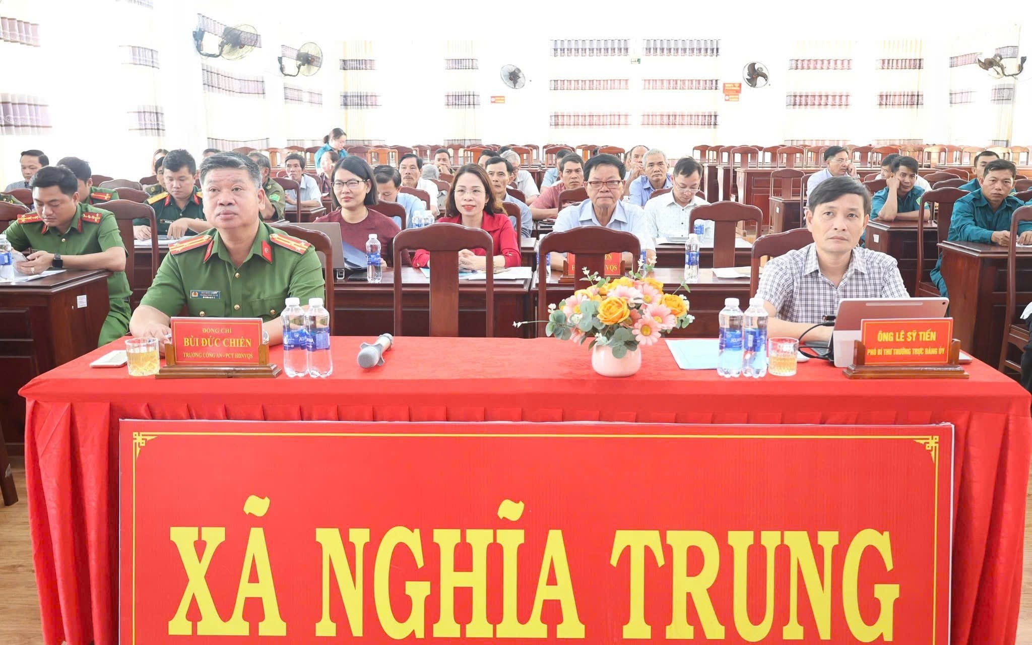 UBND xã Nghĩa Trung vừa tổ chức Hội nghị tổng kết công tác tuyển chọn, gọi công dân nhập ngũ và thực hiện nghĩa vụ tham gia Công an nhân dân (CAND) năm 2026. Đồng chí Nguyễn Văn Lưu, Phó Bí thư Đảng ủy, Chủ tịch UBND, Chủ tịch Hội đồng nghĩa vụ quân sự (NVQS) xã chủ trì hội nghị. Tới dự có đồng chí Lê Sỹ Tiến, Phó Bí thư Thường trực Đảng ủy xã và các thành viên Hội đồng Nghĩa vụ quân sự xã, đại diện các ban, ngành, đoàn thể xã.