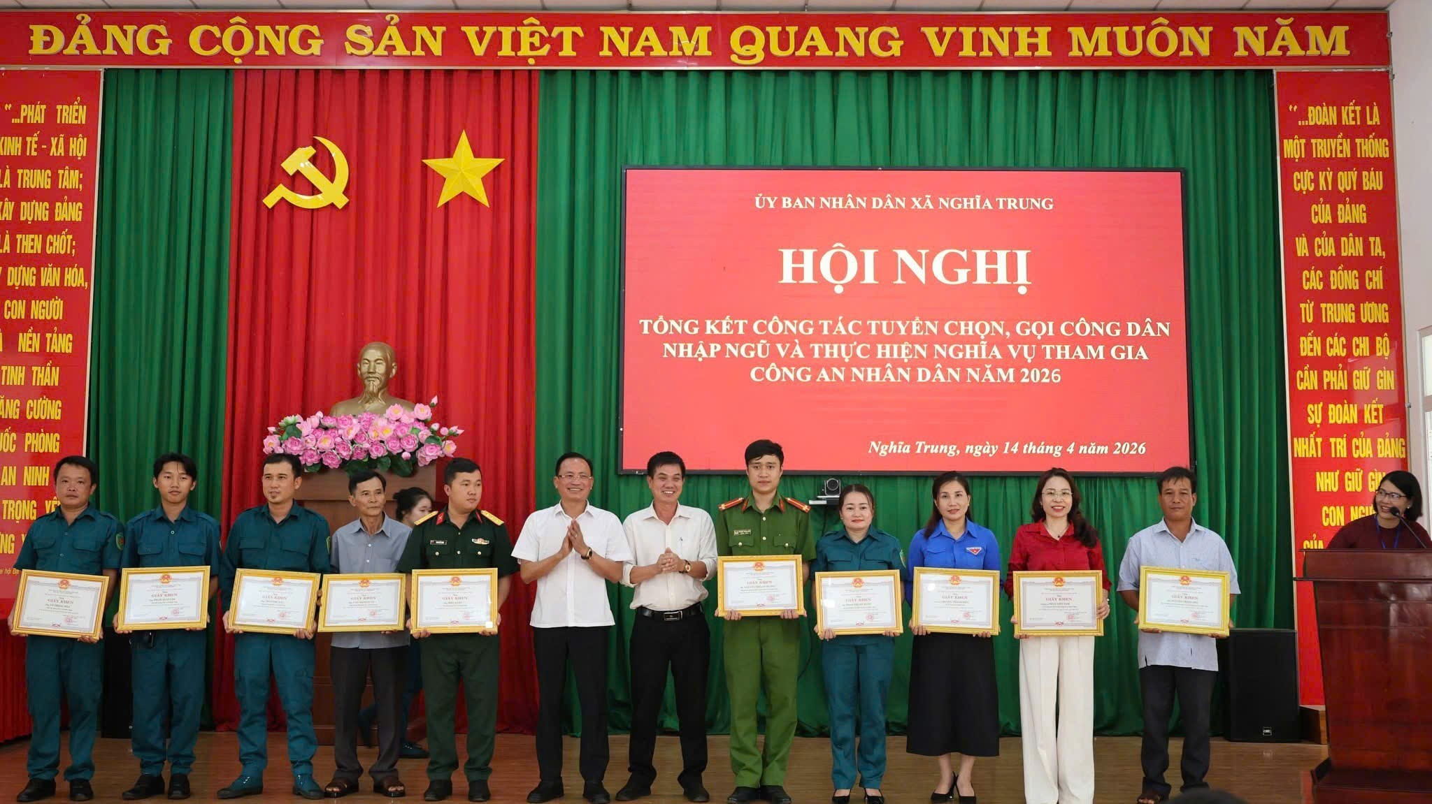 Xã Nghĩa Trung tổ chức hội nghị tổng kết công tác tuyển chọn, gọi công dân nhập ngũ năm 2026