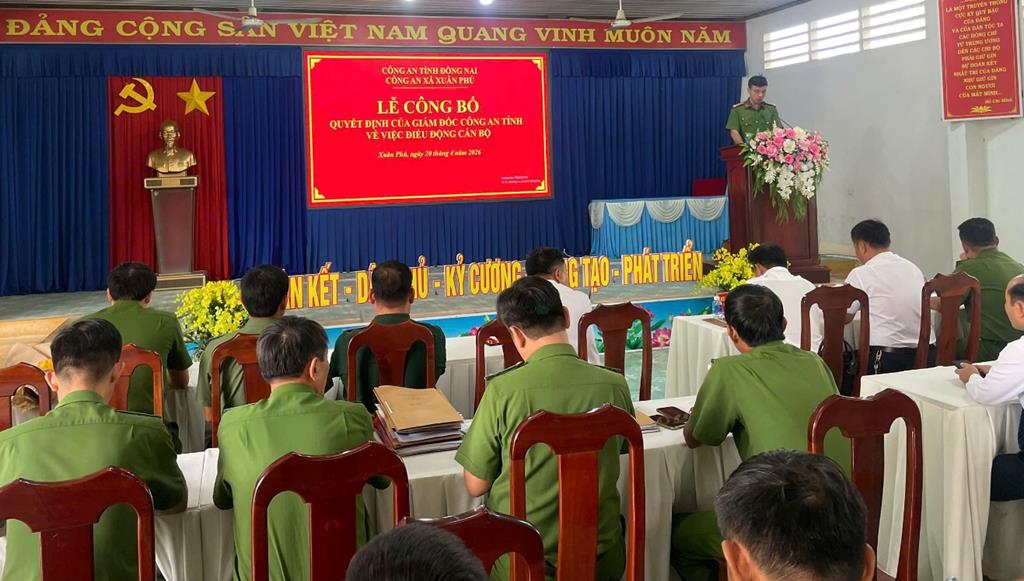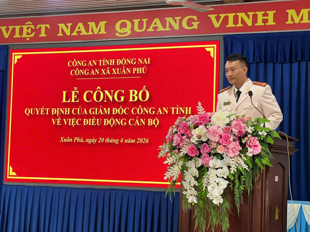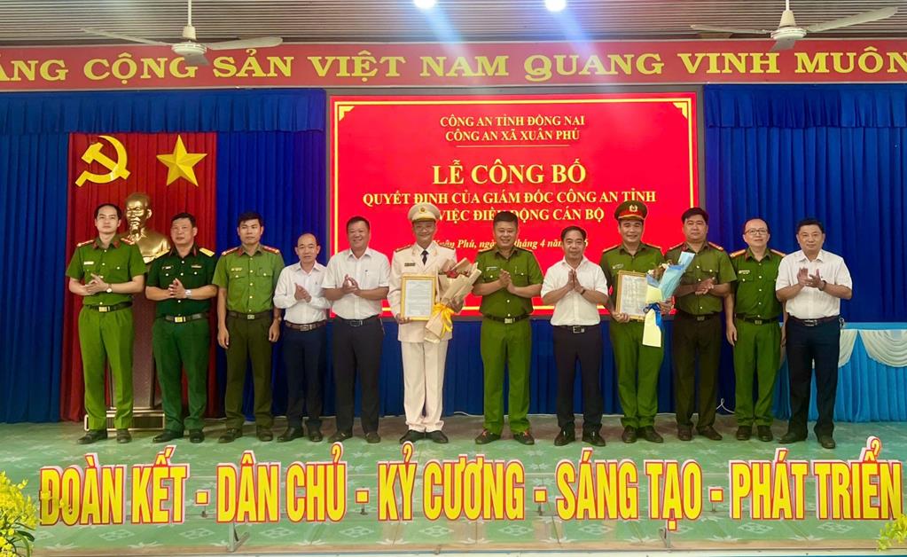 Tại buổi lễ, được sự uỷ quyền của Giám đốc Công an tỉnh, đồng chí Thượng tá Tạ Minh Điền, UVBTV Đảng uỷ, Trưởng Công an xã đã công bố quyết định của Giám đốc Công an tỉnh về việc điều động đồng chí Đại uý Trần Tuấn Anh – Phó Trưởng Công an xã Bình An đến nhận công tác và giữ chức vụ Phó Trưởng Công an xã Xuân Phú và thông báo quyết định của Giám đốc Công an tỉnh về việc điều động đồng chí Trung tá Hà Lê Nhật Trường – Phó Trưởng Công an xã Xuân Phú đến nhận công tác và giữ chức vụ Phó Trưởng Công an xã Bình An.