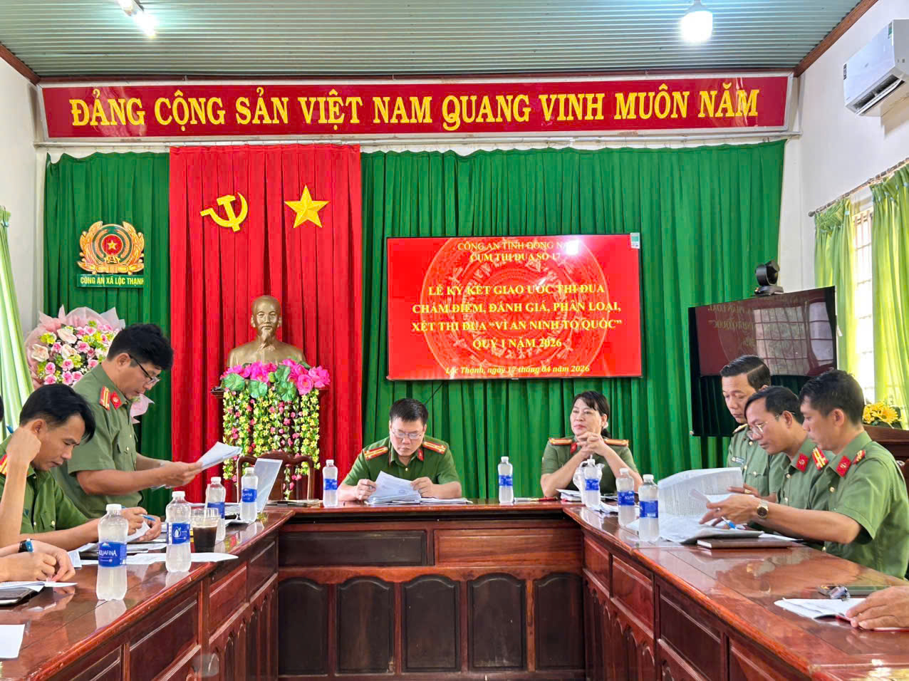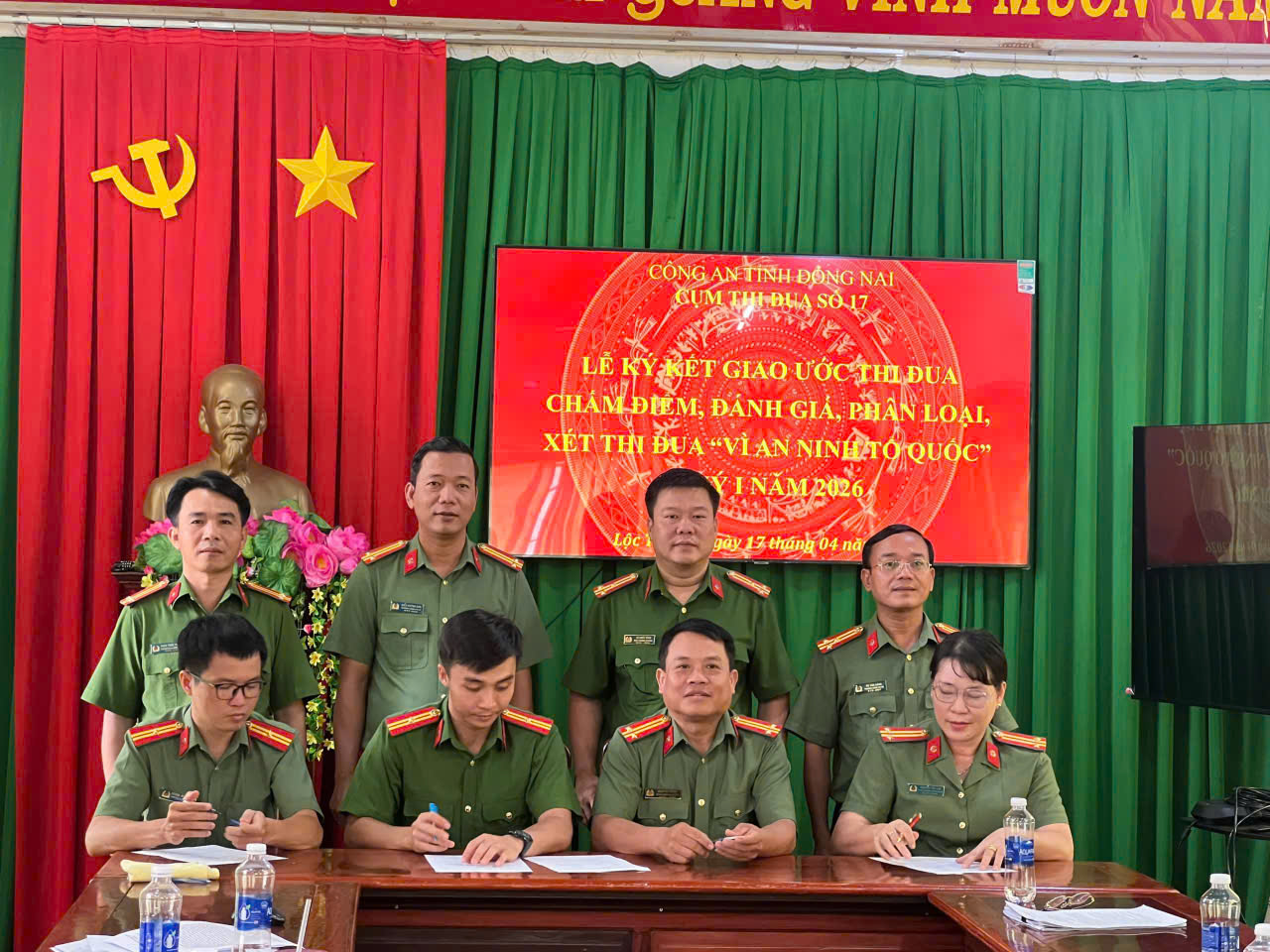 Tại Công an xã Lộc Thạnh, tỉnh Đồng Nai, Cụm thi đua số 17, gồm các xã: Lộc Thạnh, Lộc Thành, Tân Tiến, Thiện Hưng, Hưng Phước, Bù Gia Mập, Đắk Ơ đã tổ chức Lễ ký kết giao ước thi đua trong thực hiện phong trào thi đua “Vì an ninh Tổ quốc” năm 2026.