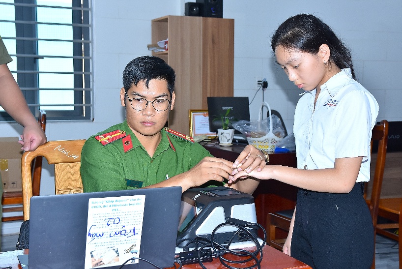 Tổ cấp căn cước Công an phường kiểm tra đối chiếu thông tin và thực hiện thủ tục lấy dấu vân tay.