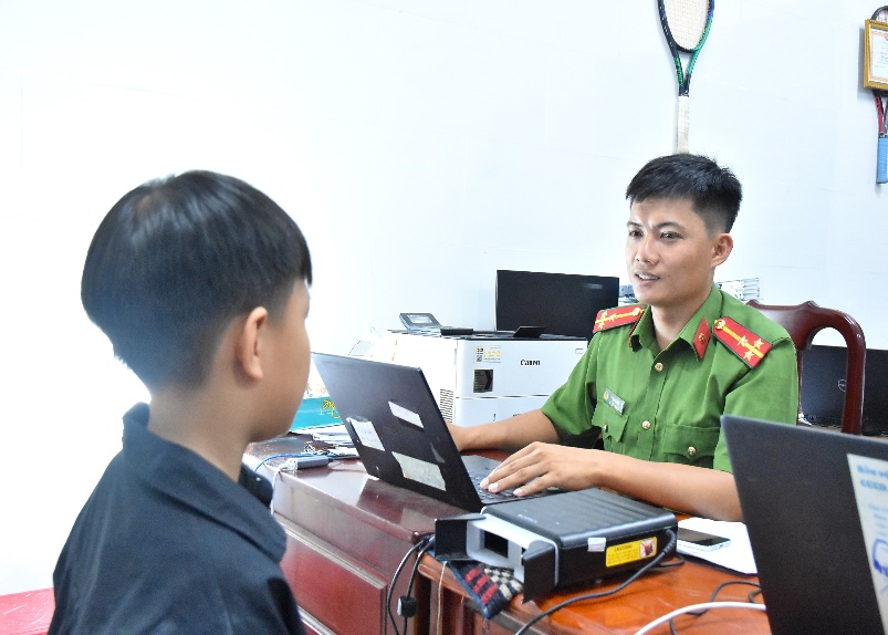 Quang cảnh cấp căn cước cho các công dân “nhí” tại Công an phường